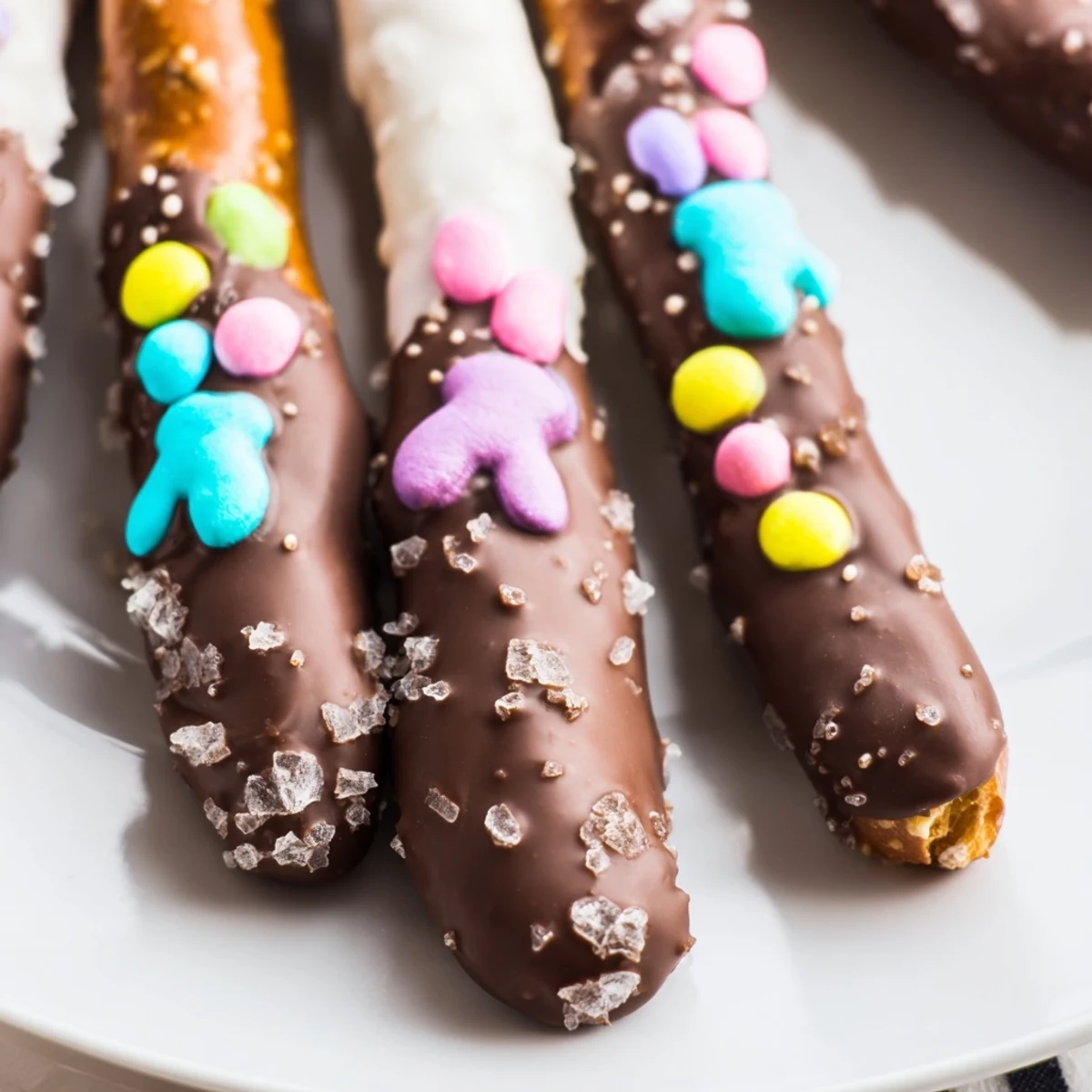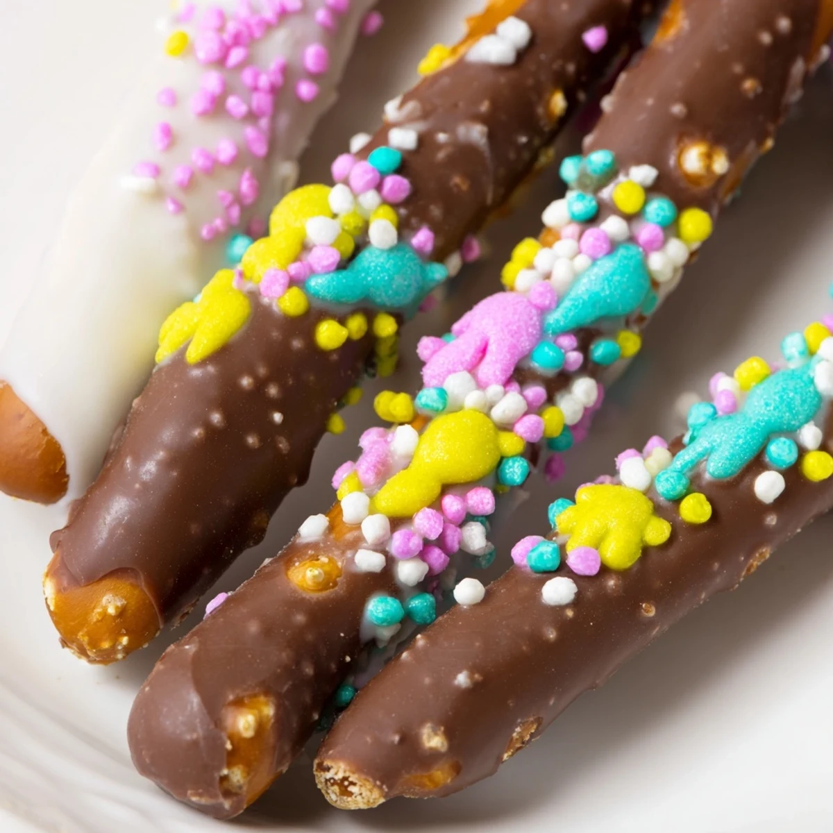 Create delightful sweet and salty treats by dipping pretzel rods into melted semi-sweet or white chocolate, then coating them with colorful Easter sprinkles. These handheld treats come together in just 25 minutes and make excellent gifts or party snacks. The crunchy pretzel pairs perfectly with smooth chocolate, while festive sprinkles add holiday cheer and extra texture.